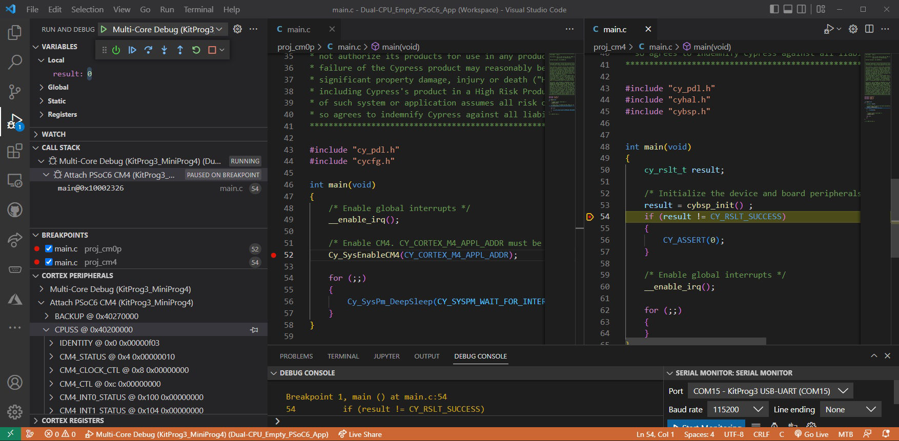 ModusToolbox 双核调试VS代码